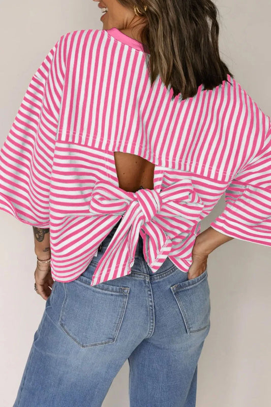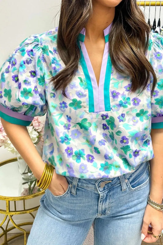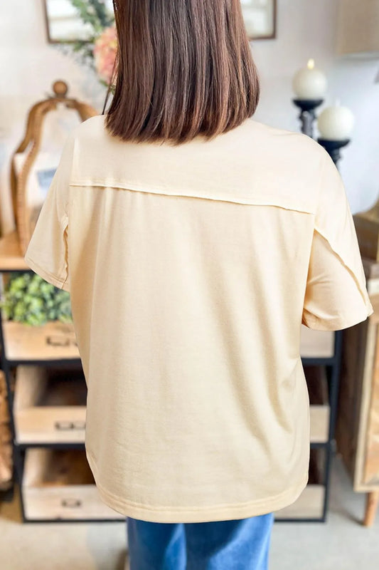 Flower Patched Exposed Stitching Trim Crew Neck Loose Tee